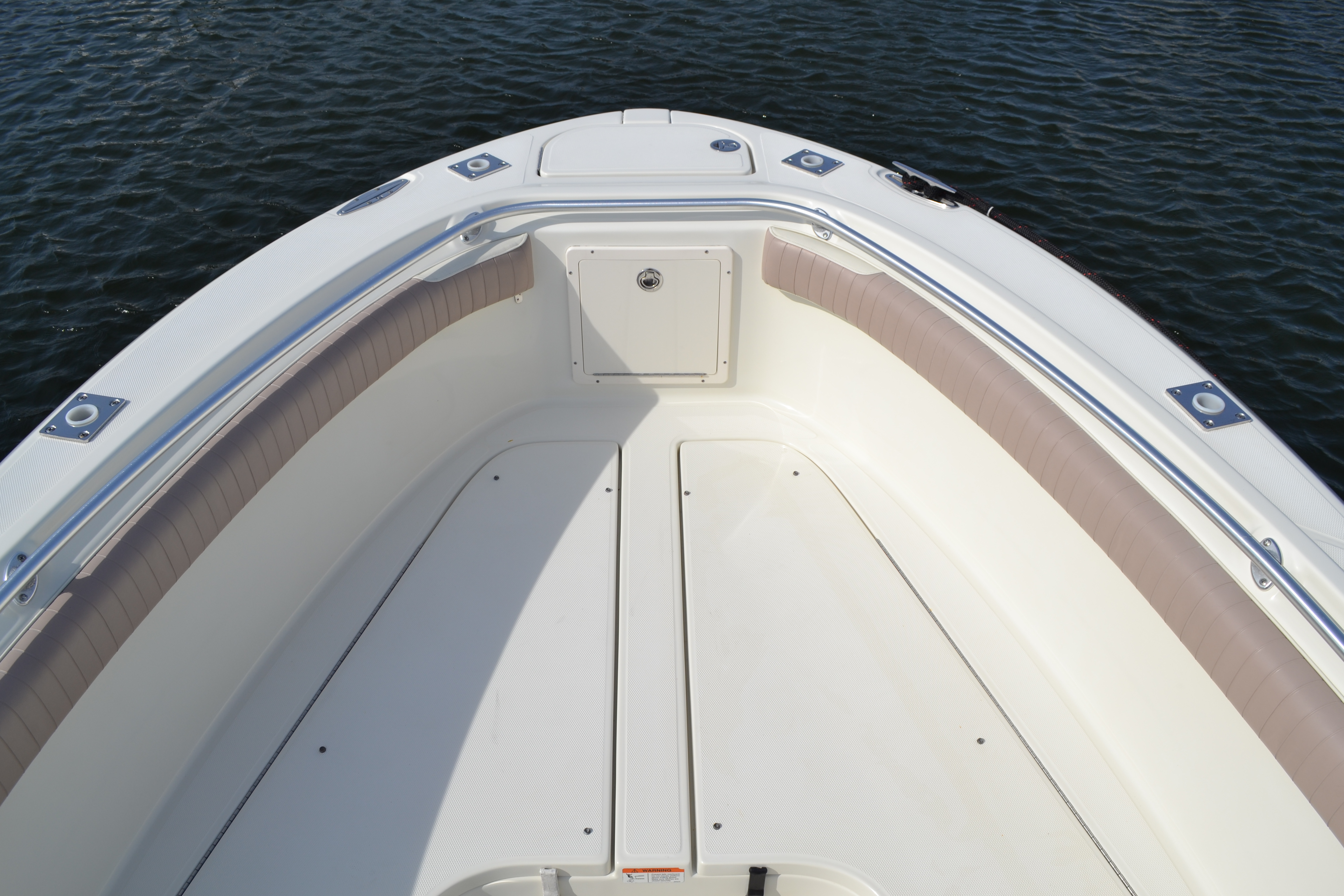 This Hydra-Sports 2900CC Vector is a rugged, Kevlar-reinforced deep-V center console built for serious offshore anglers. Known for its exceptional ride, stability, and performance in rough seas, it features a 23° deadrise, a pronounced flare for a dry ride, and a slightly flatter running surface aft that adds lift, efficiency and balance at speed.