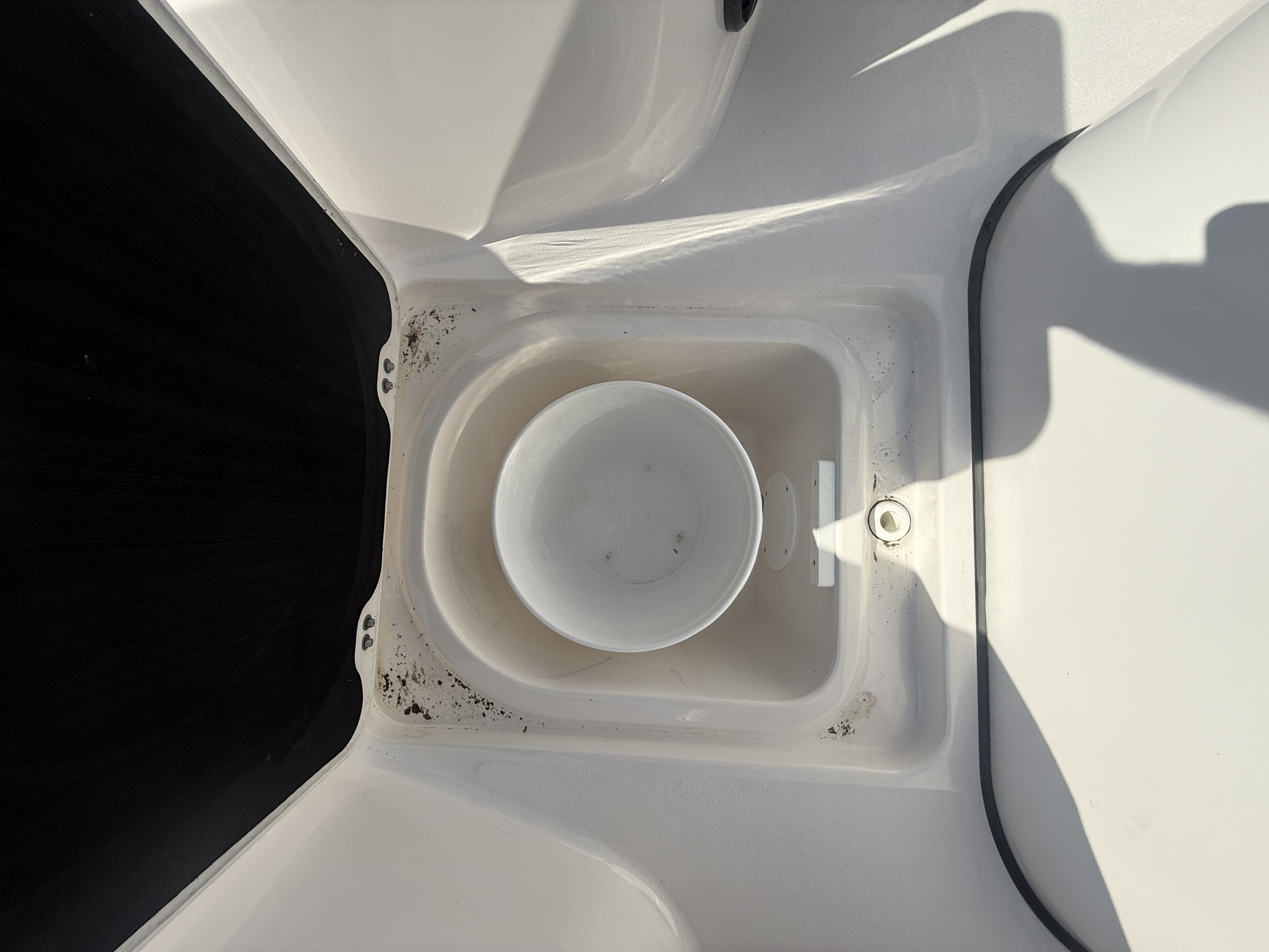 - In-floor storage with 5-gallon bucket